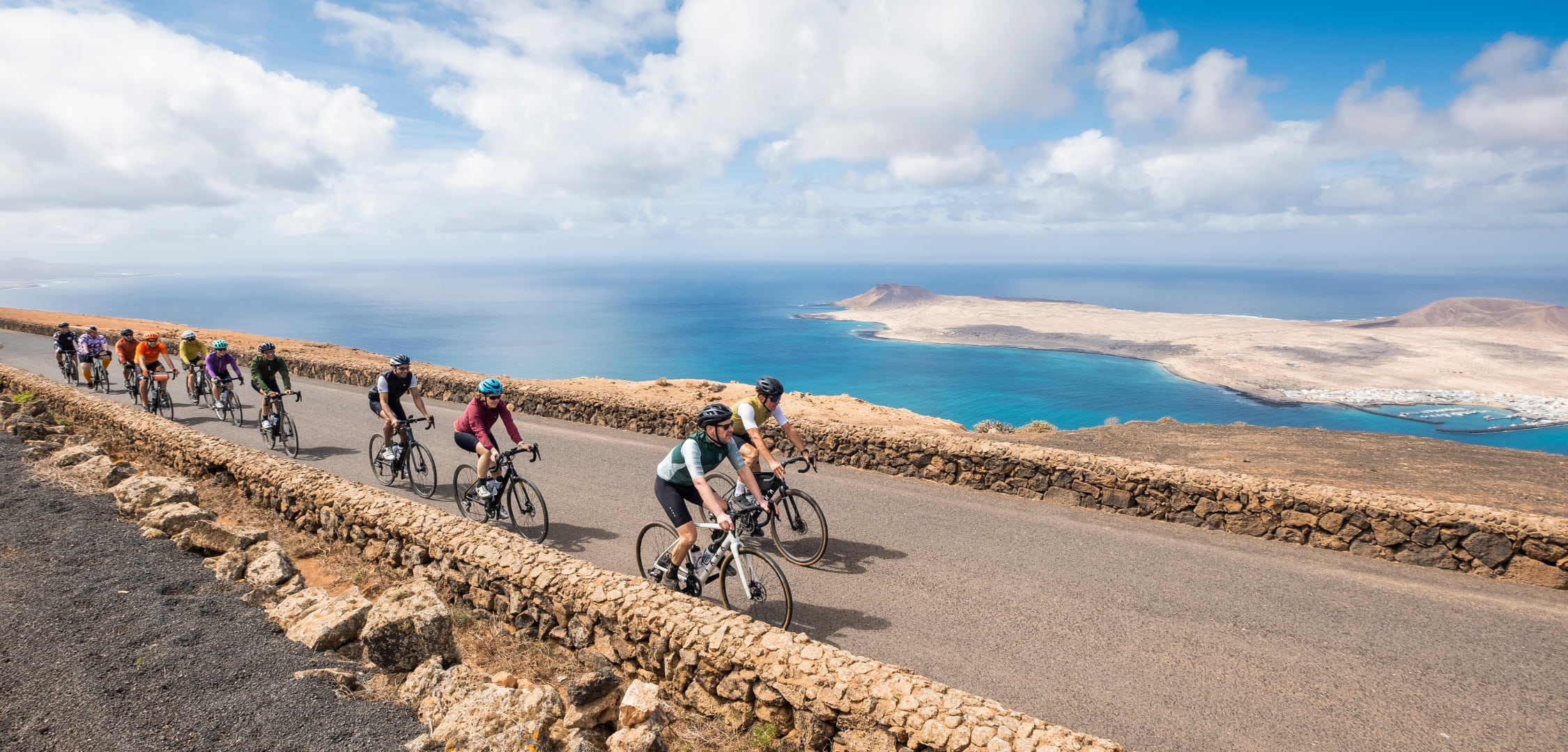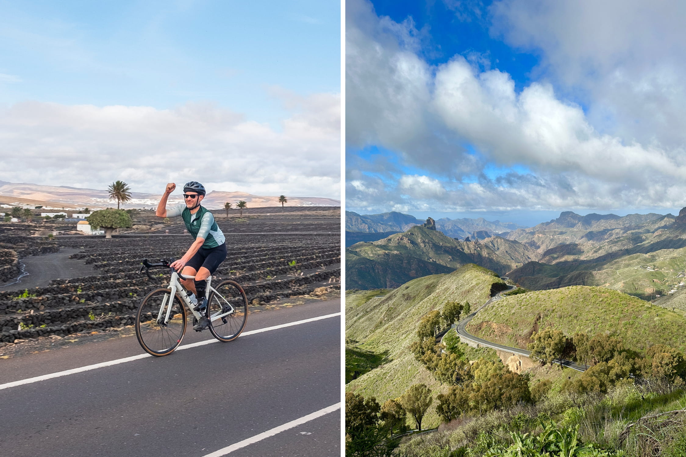 We start in Lanzarote, riding by spectacular volcanoes and charming white-washed villages on quiet roads and exciting switchbacks. We dive deep into the fascinating wineries thriving in extreme conditions and taste the unique volcanic wines.